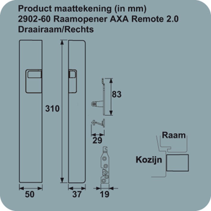 Axa remote 2.0 met raamopener wit voor draairaam buitendraaiend rechts SKG** 2902-60-98