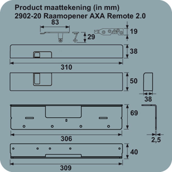 Bediening: draadloze afstandsbediening (infrarood), meerdere ramen met één afstandsbediening mogelijk.